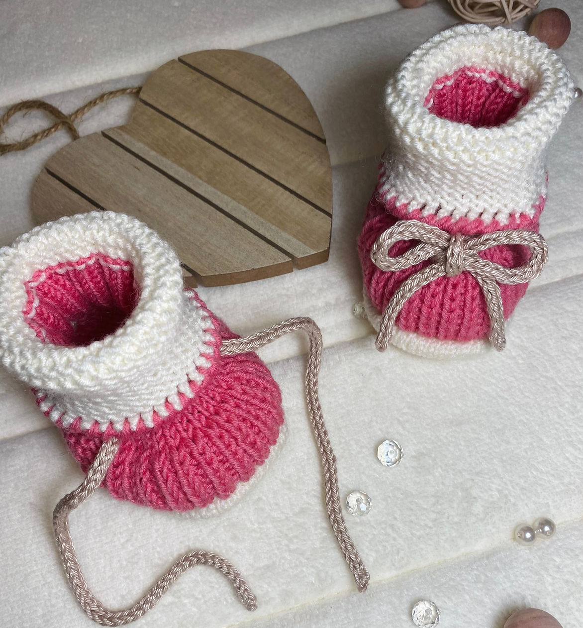 However, the size of the baby booties can be adjusted by knitting the longer sole of the bootie (extending the middle part of the sole). And adding additional loops from the sole to the heel part of the bootie.